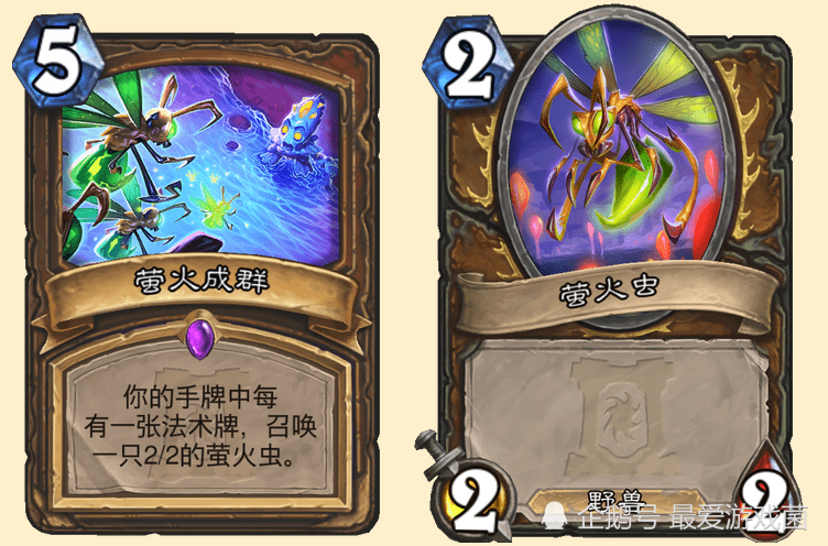 今日清晨炉石传说新拓宽包“外域的灰烬”的新卡牌持续发布,其间两张工作橙卡的全体强度都不错并且恶魔猎手的橙卡就杰出一个有意思!第一张卡牌是小德紫卡神通,5费作用是你的手牌中每有一张神通牌就呼唤一个2/2的萤火虫,衍生物为野兽特点没有特别的作用,这卡一出莫非新版别的第一个官推玩法便是神通德吗?5费直接铺场然后张狂BUFF,直接一波铺满?