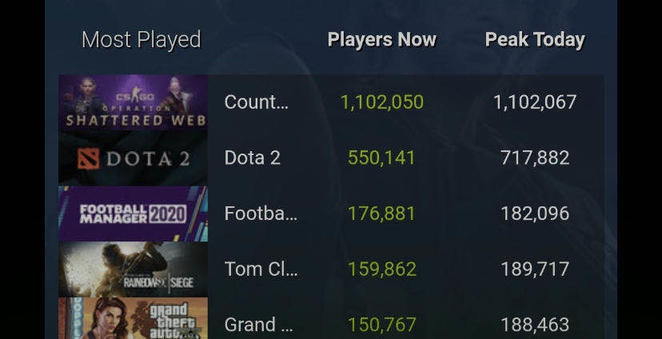 最近,由于新冠的全球性迸发,人们减少了外出频率,一切游戏简直都得到了喷涌式的玩家增加,CS:GO也不破例,打破80万,90万,并在3月15日打破100万之后,CS:GO活泼玩家还在持续上涨,现已正式打破了一百一十万。