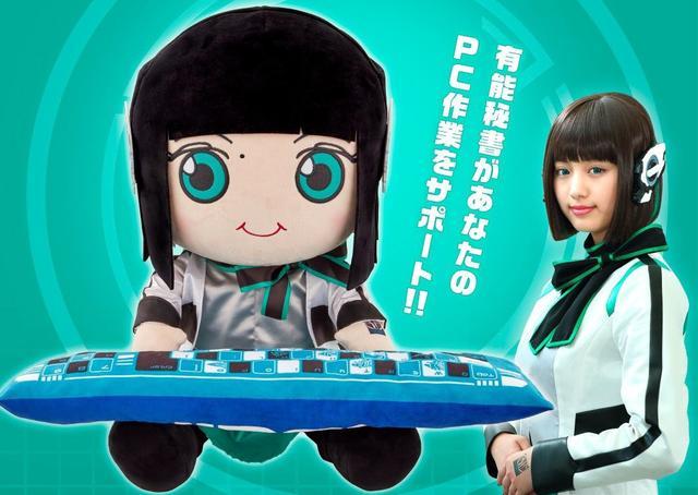 与此一起,在产品的概况中咱们正真看到了整个产品的指数。高的话是有43cm,宽的话则是有50cm,整个体积仍是比较大的。因而抱起来手感方面应该仍是适当不错的,蛮合适工作的时分抱在怀里。除此之外,还附带了一个键盘类型的抱枕,两者结合在一起仍是蛮有感觉,一起咱们也看到了万代产品演示图蛮令人羡慕的。