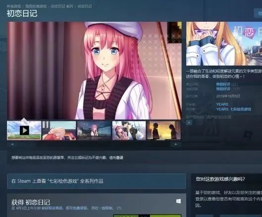 继昨夜Epic喜加一后,Steam又双叒叕的敞开了一个新的喜加一活动:视觉小说游戏《初恋日记》的免费收取,收取时限为4月3日早3点前。游戏点评目前为“特别好评”。