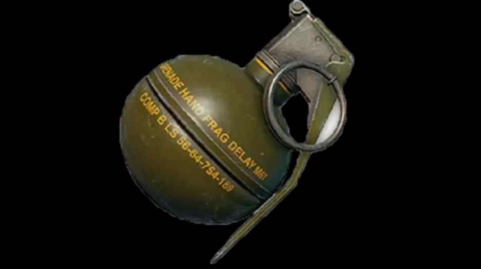 手榴弹由弹体装药引信组成,曾在日俄战争中发挥过重要的效果,在第一次世界大战中,得到广泛的使用,其时较为典型的手榴弹有德国的方针手榴弹,和英国的菠萝形米尔斯式手榴弹。而手榴弹在游戏中效果也是非常大的,损伤是规模性爆破损伤,只需敌人接近,统统一击必杀,引爆时刻是5秒,爆破规模5米,可用于攻楼,能够炸被卡住的车子。