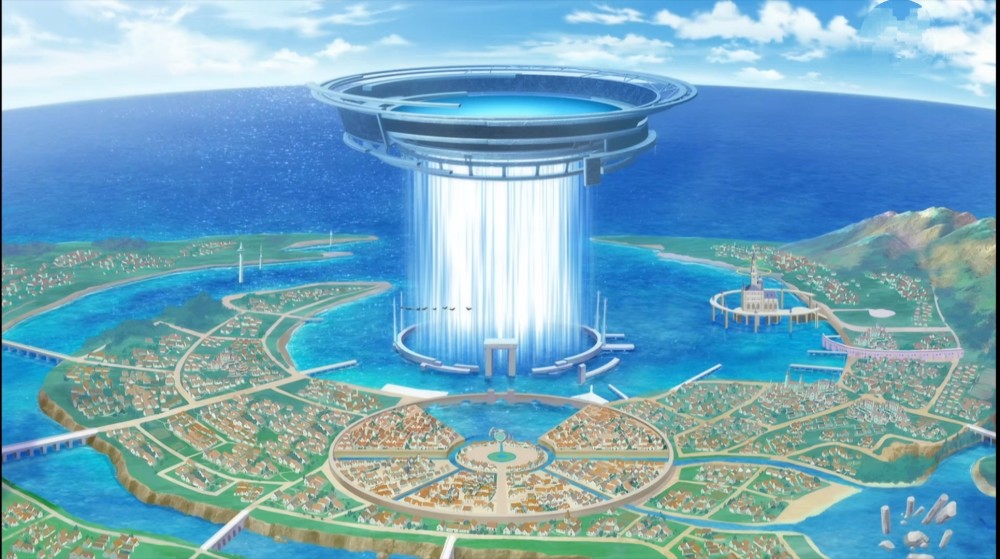 这部动漫的第一集首要仍是以介绍国际观为主,究竟是一个全新的巨大的异国际。这样一个国际的中心盖特皮亚,本是一望无垠的荒芜,直到女神的忽然来临,使得国际各地呈现了各式各样的“门”,人们逐步发现了保持门的巨大能量来历——闪亮水晶,人们开端挖掘并使用其间的能量,国际文明也从此走向复兴。