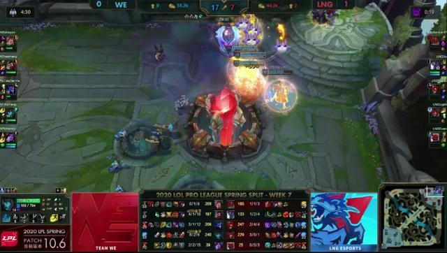 回忆本次的竞赛LNG的体现可以说是适当的不错,上来第一局LNG就凭借着优异的中野发挥,成功在28分钟时便控到了风龙魂,后期WE虽然一向坚强抵挡,但无法下风太大终究32分钟LNG带着大龙buff直接一波完毕竞赛。但很快WE就在第二局的竞赛中找回了状况,依靠上单腕豪的优异发挥,WE成功扳回一局将竞赛拖入终究局。
